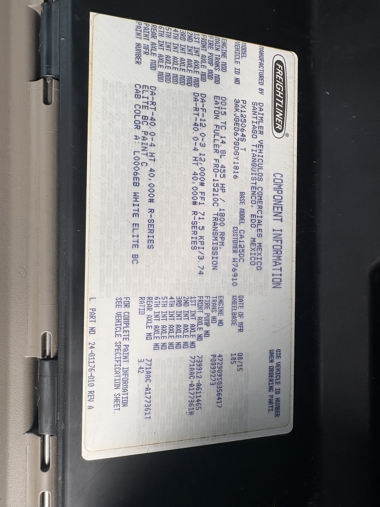 | Engine | DETROIT DD15 455HP |