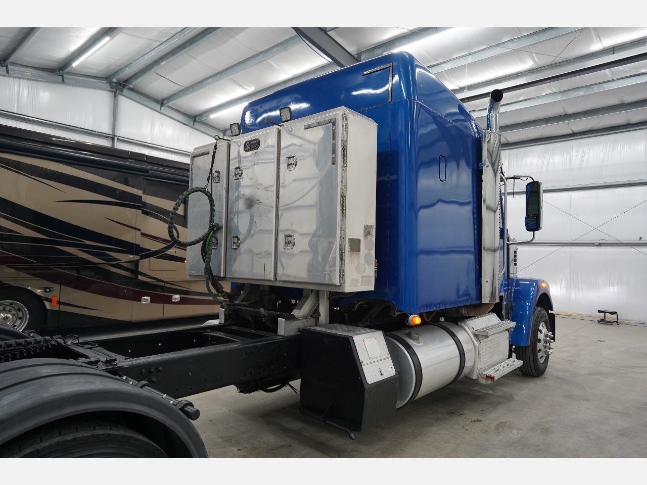 Consignment Sale: 2013 Freightliner Coronado SD, Detroit 60 Series 12.7L 450hp, Eaton Fuller Manual 18spd Transmission, A/C, Heat, Cruise Control, Jake Brake, PTO/ 2 Line Wetkit, Interaxle Lock, Traction Control Diff, Air Slide 5th Wheel, Air Dump, Wood Grain Interior, Gauge Package, 3 Door Aluminum Headache Rack, ThermoKing APU, Full Plastic Fenders, 22.5 Rubber, 275" WB, 3.91 Rear Ratio, Double Framed (x2 Frame) Only 214k ECM Miles