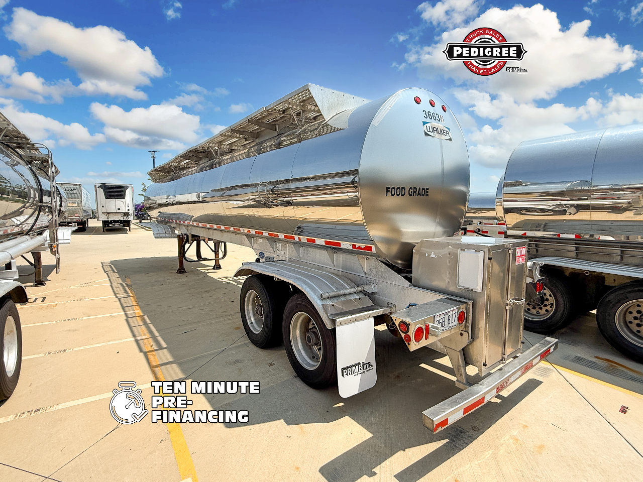 Built for viscous, temperature-sensitive food-grade liquid loads — three Type 316 SS manholes, enhanced in-transit heat, heated cabinet, and an auger-type valve that handles thick products where standard tankers struggle. FOOD GRADE TANKER TRAILER — 6,800 GALLONS — ENHANCED HEAT — BUILT TO 3A SANITARY SPEC One Owner — Prime Inc. Fleet Maintained — Full Lifetime Service Record — DOT Inspected & Ready to Work This trailer is equipped with: NEED FINANCING? NO PROBLEM! We work with over 30 banks to get you the best deal. Contact us & we’ll connect you with a Trailer Expert that can answer all of your questions and make the process smooth & easy! We can get you Pre-Qualified in Less Than 10 Minutes! NO COMMITMENT & NO HIT ON YOUR CREDIT! **Click HERE To See What Deal We Can Get You! **