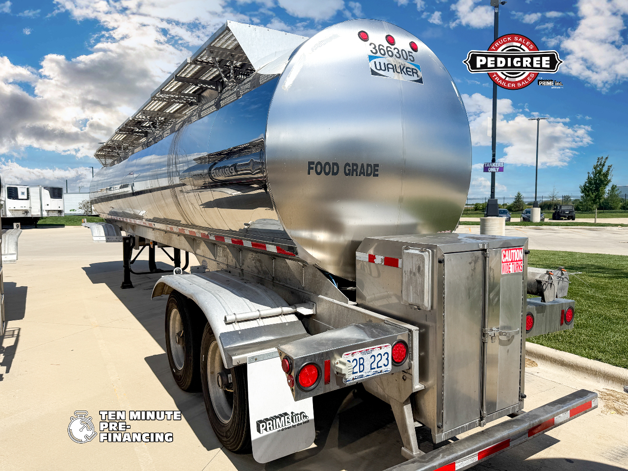 Built for viscous, temperature-sensitive food-grade liquid loads — three Type 316 SS manholes, enhanced in-transit heat, heated cabinet, and an auger-type valve that handles thick products where standard tankers struggle. FOOD GRADE TANKER TRAILER — 6,800 GALLONS — ENHANCED HEAT — BUILT TO 3A SANITARY SPEC One Owner — Prime Inc. Fleet Maintained — Full Lifetime Service Record — DOT Inspected & Ready to Work This trailer is equipped with: NEED FINANCING? NO PROBLEM! We work with over 30 banks to get you the best deal. Contact us & we’ll connect you with a Trailer Expert that can answer all of your questions and make the process smooth & easy! We can get you Pre-Qualified in Less Than 10 Minutes! NO COMMITMENT & NO HIT ON YOUR CREDIT! **Click HERE To See What Deal We Can Get You! **
